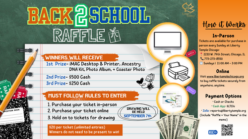 Get ready to win BIG as we send families back to school in style! Enter our exciting Back 2 School Raffle Giveaway for a chance to win amazing prizes that support both learning and legacy.