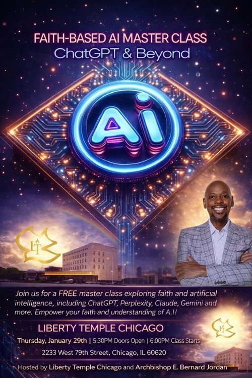 Join us this Thursday, January 29th, for a FREE in-person master class as we explore the intersection of faith and artificial intelligence.